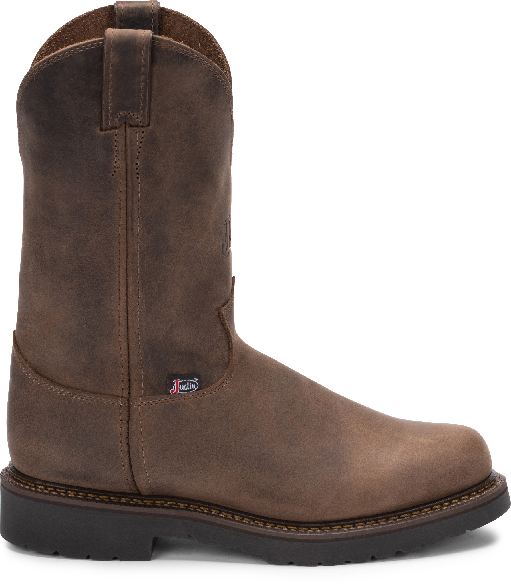 The Balusters Bay Gaucho, 11″ tall J-Max® men’s pull-on work boot features a rich brown leather exterior crafted for durability.