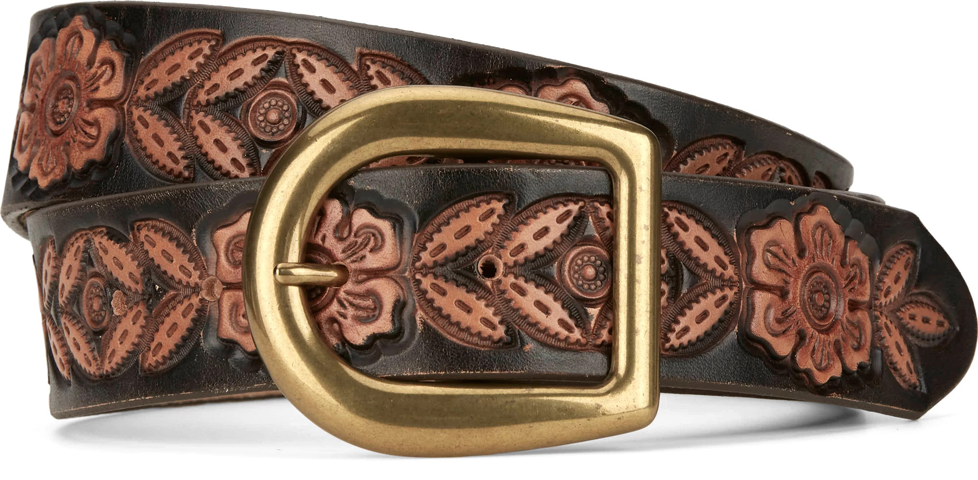 Add a touch of vintage Western flair to your look with this beautifully embossed women’s belt. Featuring intricate floral tooling and a bold antique-style buckle, it’s the perfect blend of rustic elegance and everyday durability. A standout accessory that ties any outfit together with timeless charm.