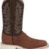 Crafted from full quill ostrich and cowhide, the Dakota in wild brandy steps into the spotlight and instantly commands the attention it deserves. Built to perform both in and out of the saddle, this boot features our new oil- and slip-resisting crepe outsole that’s lighter than a rubber outsole but still strong enough to keep you steady on your feet. On the inside, our J-Flex® Comfort System insole will keep you more than comfortable all day. This boot is proudly Made in the USA with global parts.As the official boot of the AQHA, a percentage of the sales from the collection goes back to the AQHA Foundation and scholarships. This product is Made in the USA with global parts.