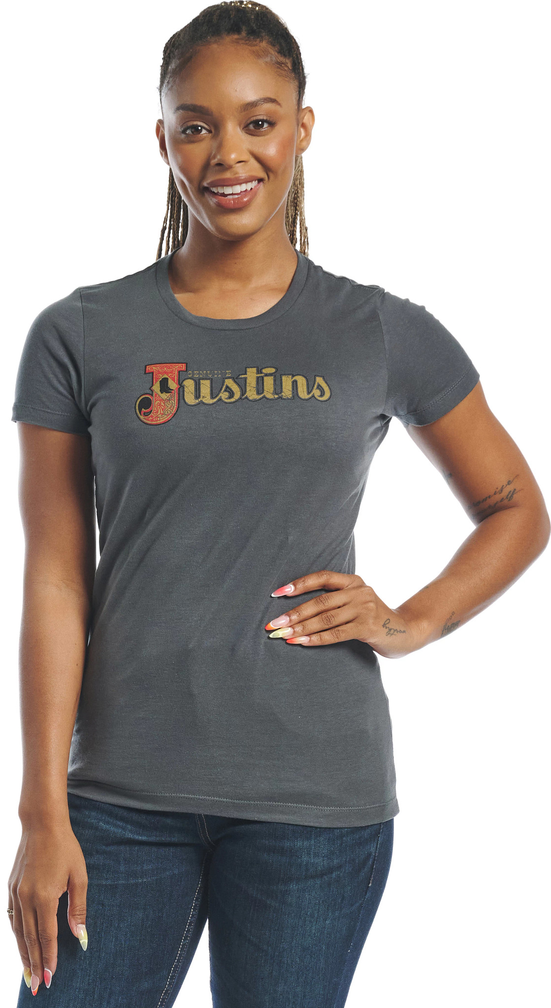 Designed with the original Genuine Justins logo, this cozy retro tee is a Justin classic.