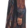 Elevate your wardrobe with this sophisticated maxi wrap dress. Featuring a captivating blend of patterns and textures, it offers a flattering silhouette with a tie-waist that defines your shape. The long, sheer sleeves and flowing skirt create a graceful look, perfect for any special occasion or evening out. This dress combines elegance with a touch of modern edge, making it a standout piece in any closet.