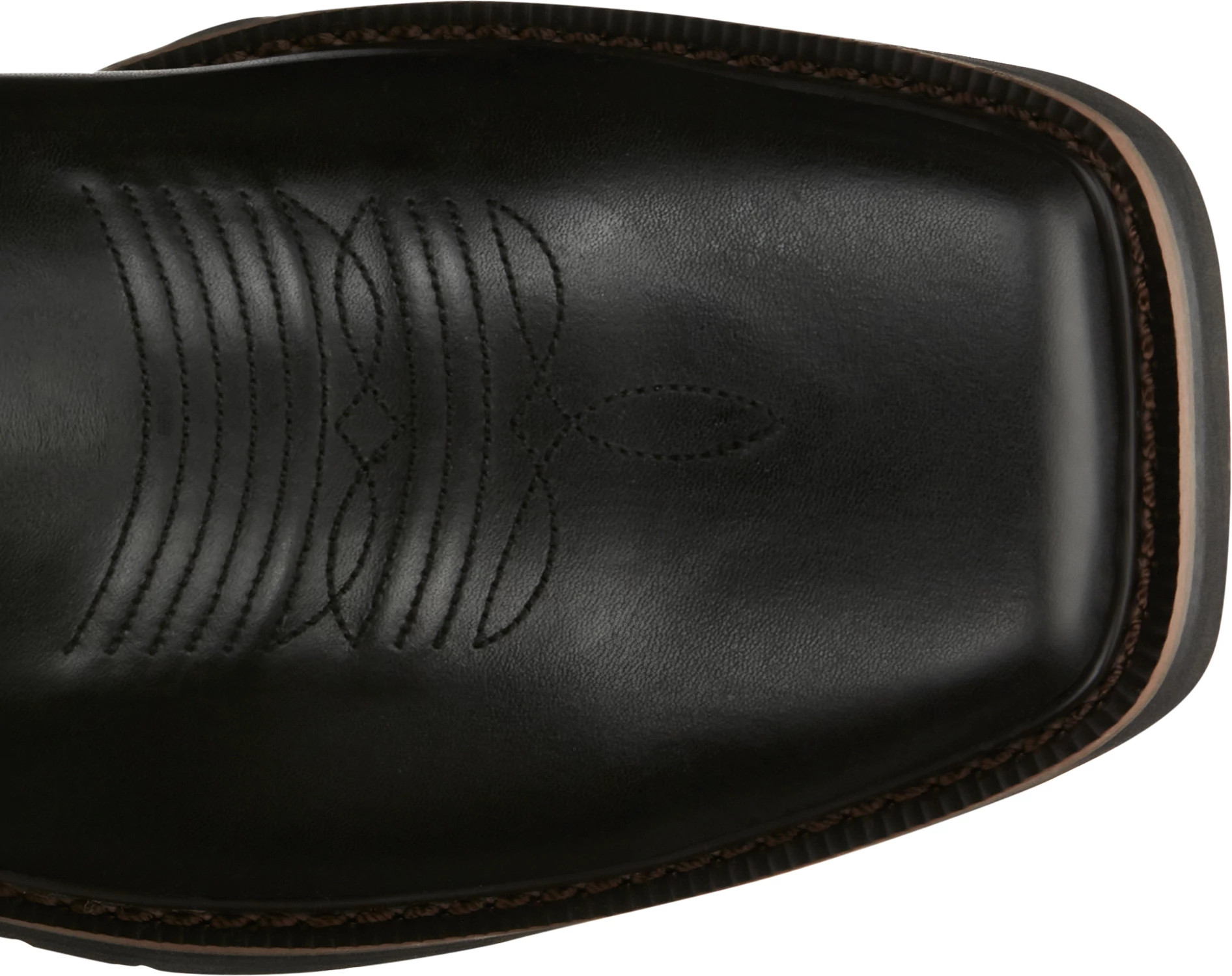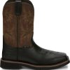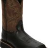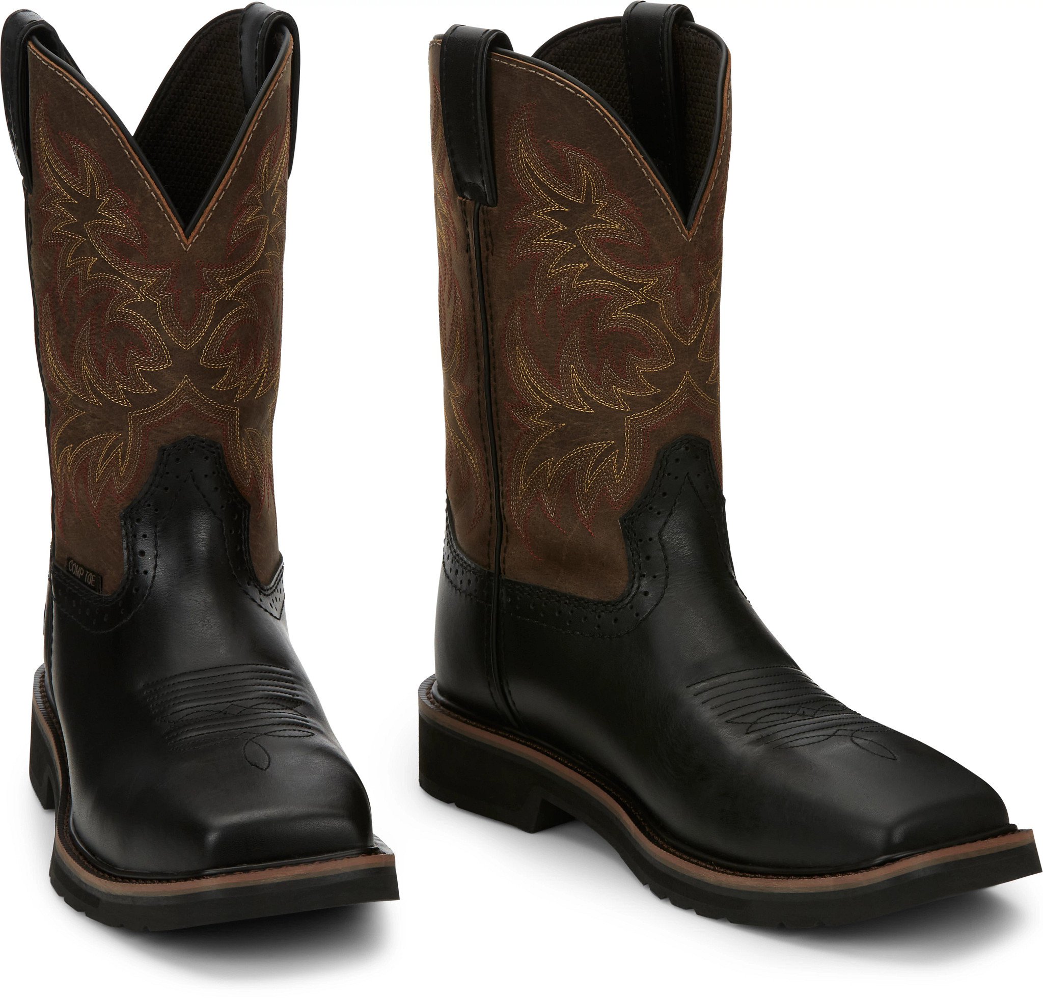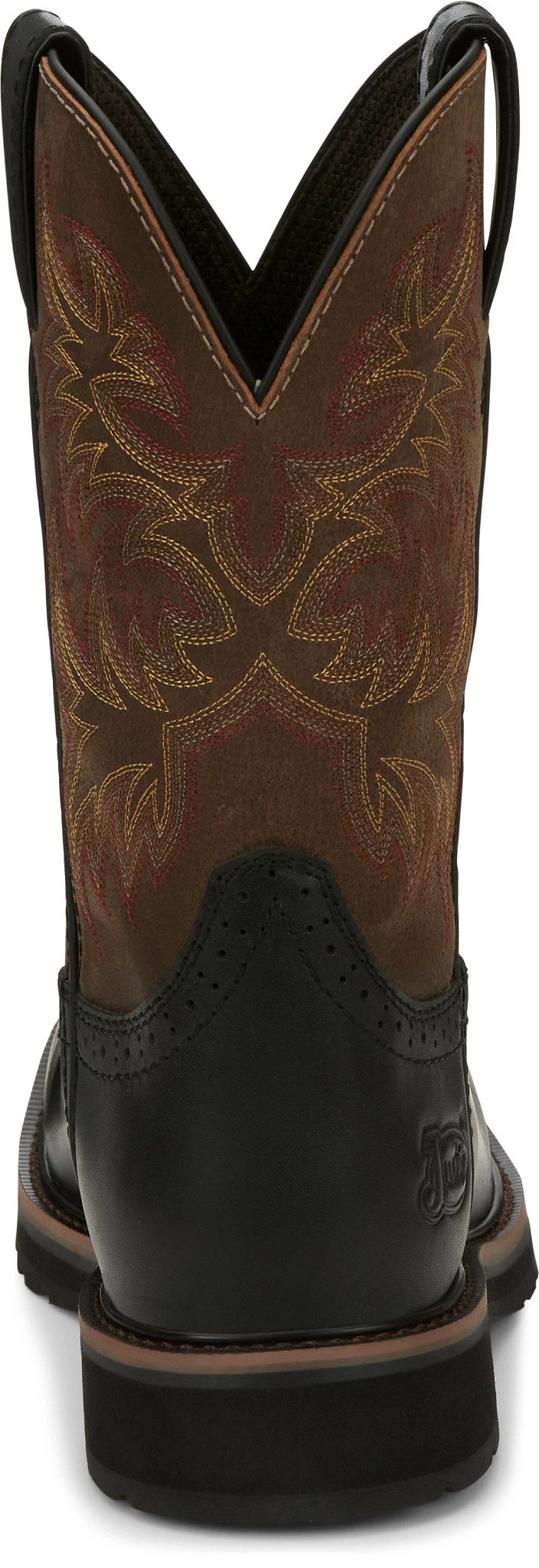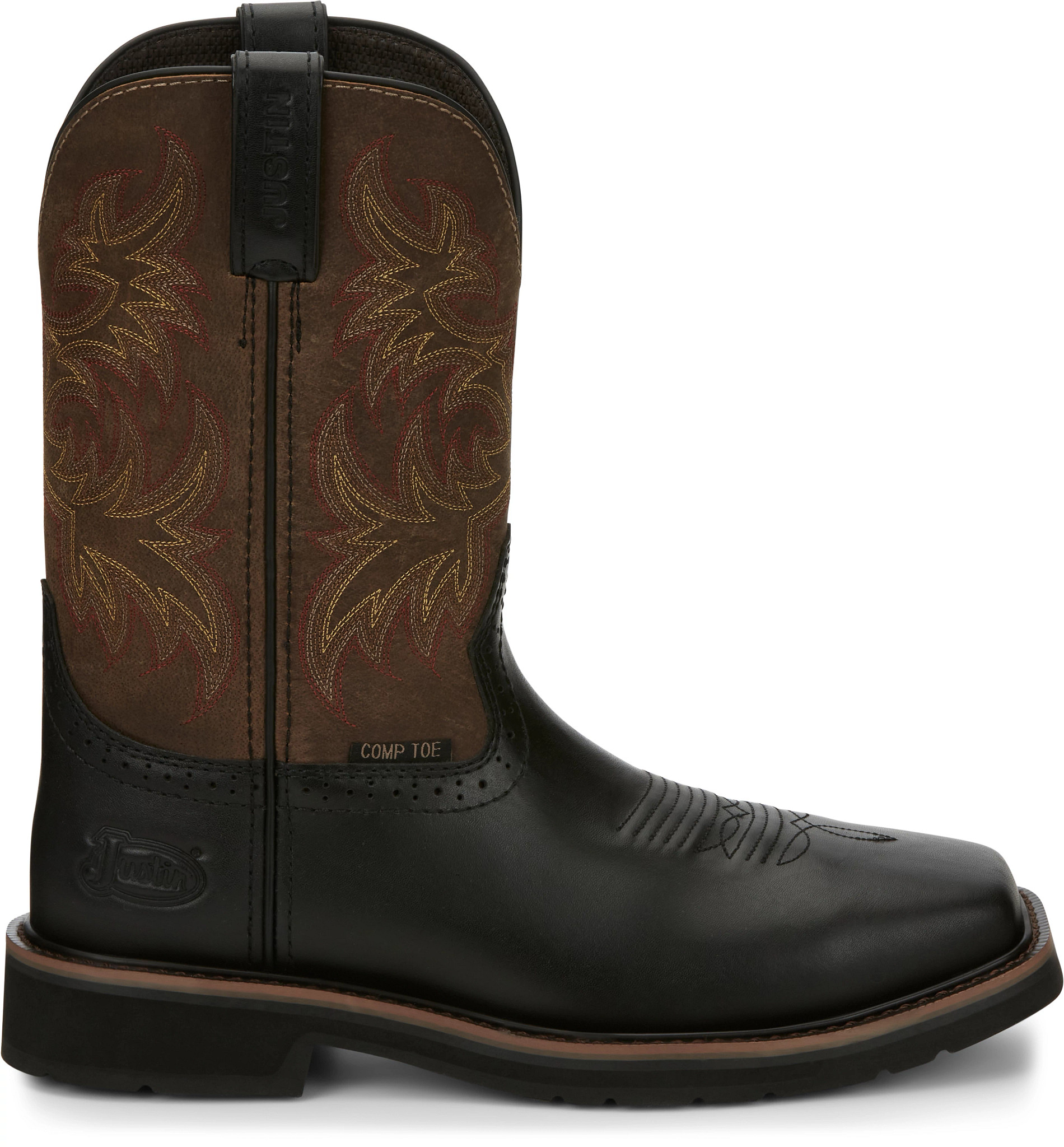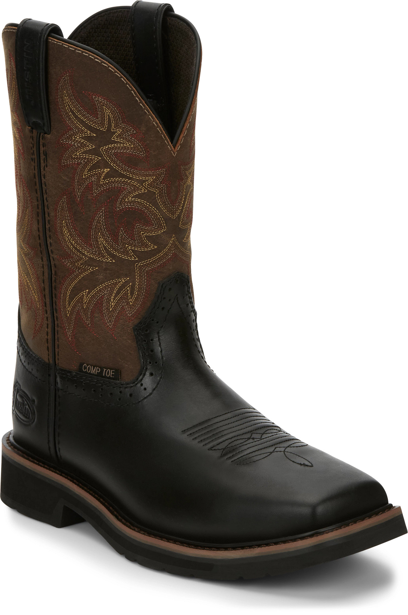 Its distressed golden brown leather upper is garnished by a gold and peach stitch pattern and is paired with a polished black square toe vamp. It’s composite toe provides an armor-like shield and meets safety standards without weighing you down. The J-Flex Flexible Comfort System® insole cushions and supports the foot and the Stampede™ dual density rubber outsole with resistance to abrasion, chips, slipping, and marking which allows you to comfortably work on any surface and meets ASTM F2413-11, I75, C75 EH safety footwear standards.