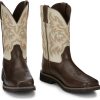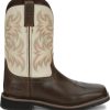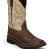 Its leather upper is embellished by a vibrant stitch pattern and is paired with a polished square toe foot. This boot has a rubber and EVA combination outsole with resistance to abrasion, chips, slipping, and marking which allows you to comfortably work on any surface.