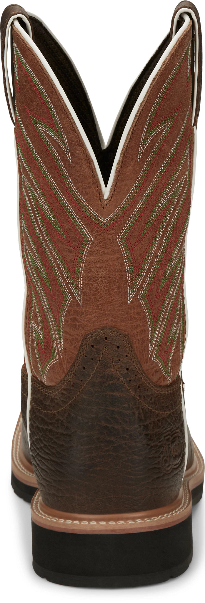 The parched orange shaft compliments a dark brown square toe and features an orthotic insole that will provide lasting comfort and support. With the steel toe, the foot has added protection and the Stampede™ rubber outsole is resistant to abrasion, chips, slipping, and marking so it’s prepared for the most difficult terrain.