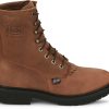 Introducing our 8″ tall lace-up work boot in the classic aged bark color. This boot is not only stylish but also built to withstand the toughest work environments. Made with waterproof materials, it keeps your feet dry and protected from the elements. Whether you’re working outdoors, in wet conditions, or navigating rough terrains, this boot is designed to provide both comfort and durability. Lace it up and conquer any job with confidence.