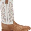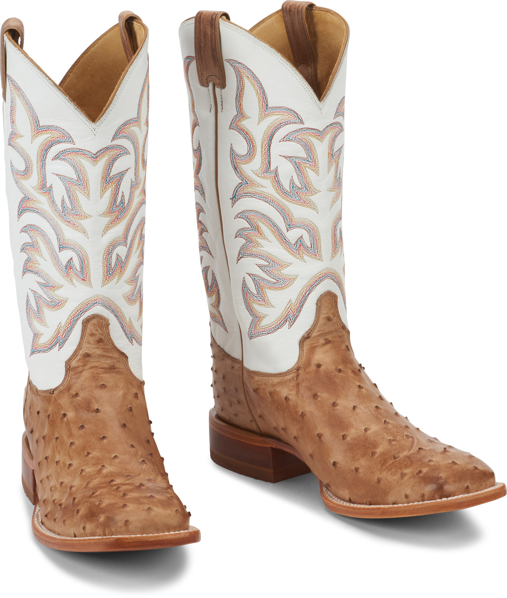 These boots exude elegance, boasting a luxurious leather upper adorned with a captivating stitch pattern and a full quill ostrich foot. Crafted for comfort, they showcase a wide square toe and incorporate J-Flex Flexible Comfort System® insoles to provide additional support.