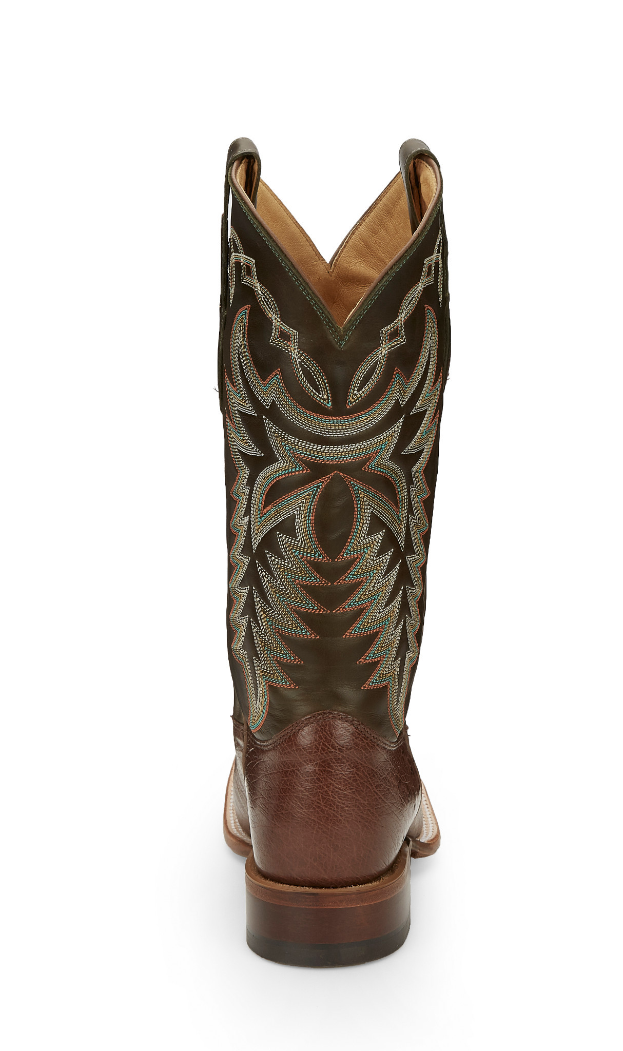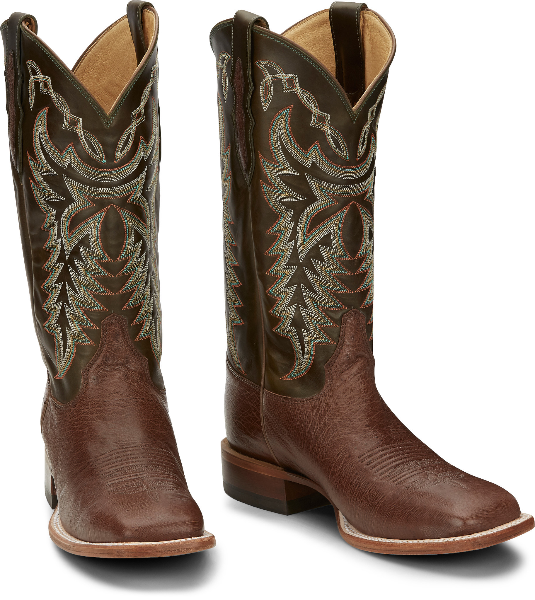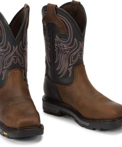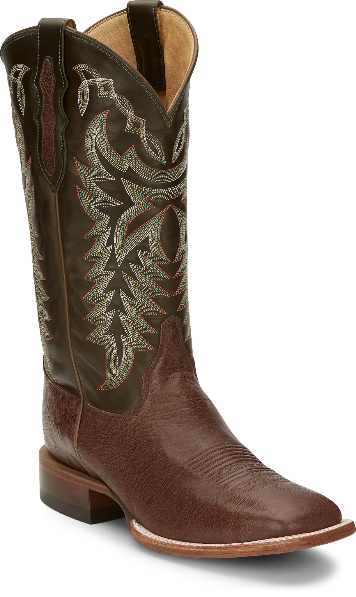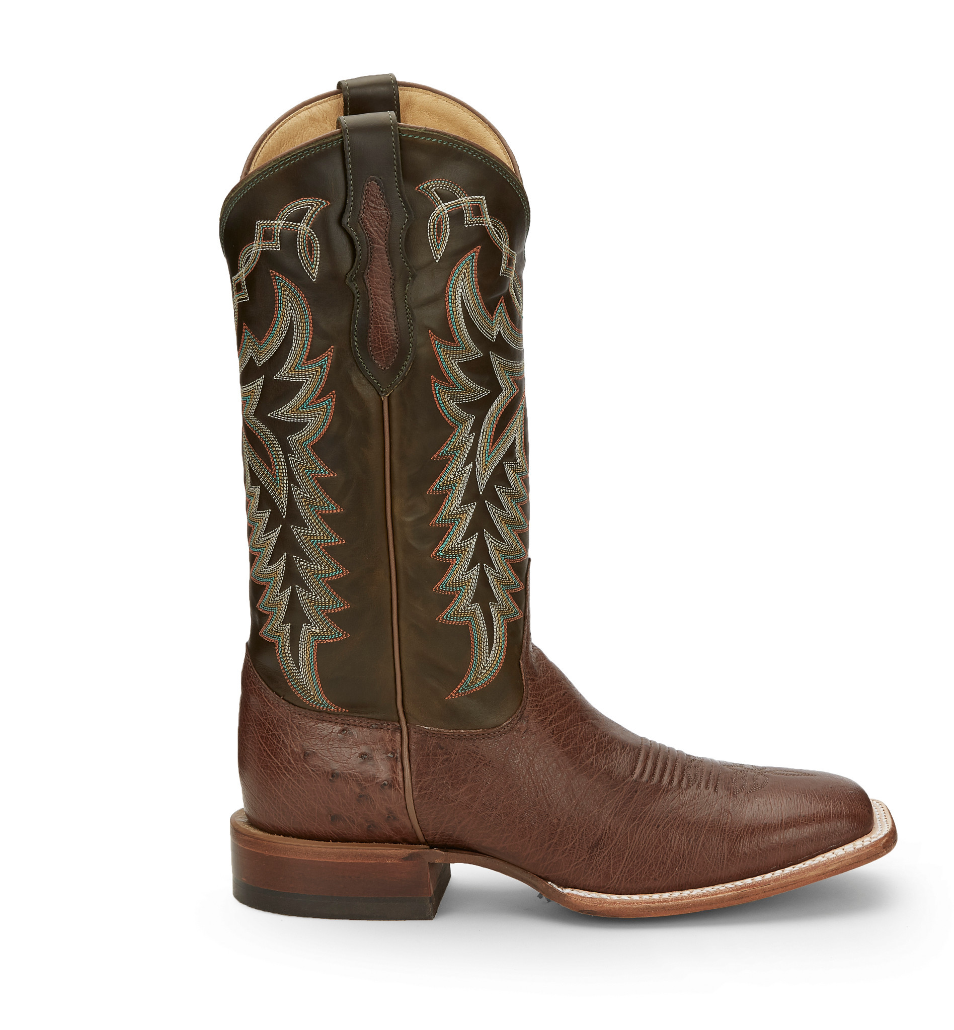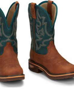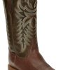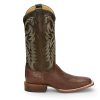 This boot has a classy touch, featuring a rich leather upper with a golden tan stitch pattern and a smooth quill ostrich foot. It’s designed for comfort, sporting a broad square toe and J-Flex Flexible Comfort System® insoles for added support.