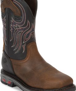 This boot has a classy touch, featuring a rich leather upper with a golden tan stitch pattern and a smooth quill ostrich foot. It’s designed for comfort, sporting a broad square toe and J-Flex Flexible Comfort System® insoles for added support.