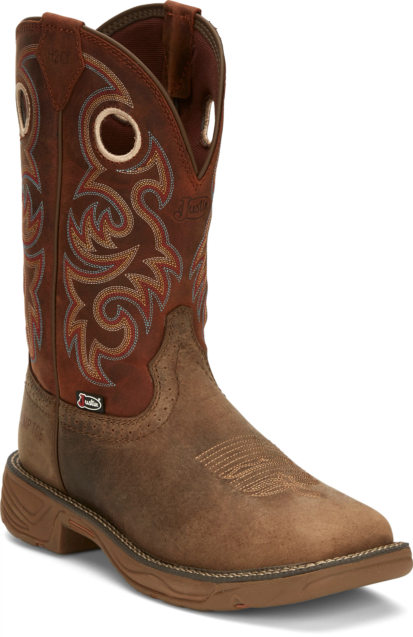 This rugged waterproof boot is designed for protection, durability and comfort, with a composite safety toe, oil- and slip-resisting Stampede rubber outsole and an orthotic insert.