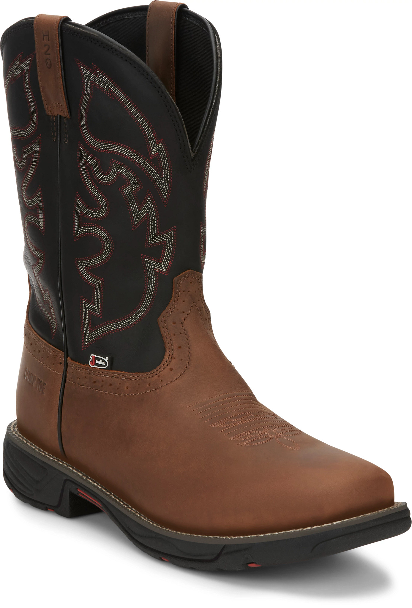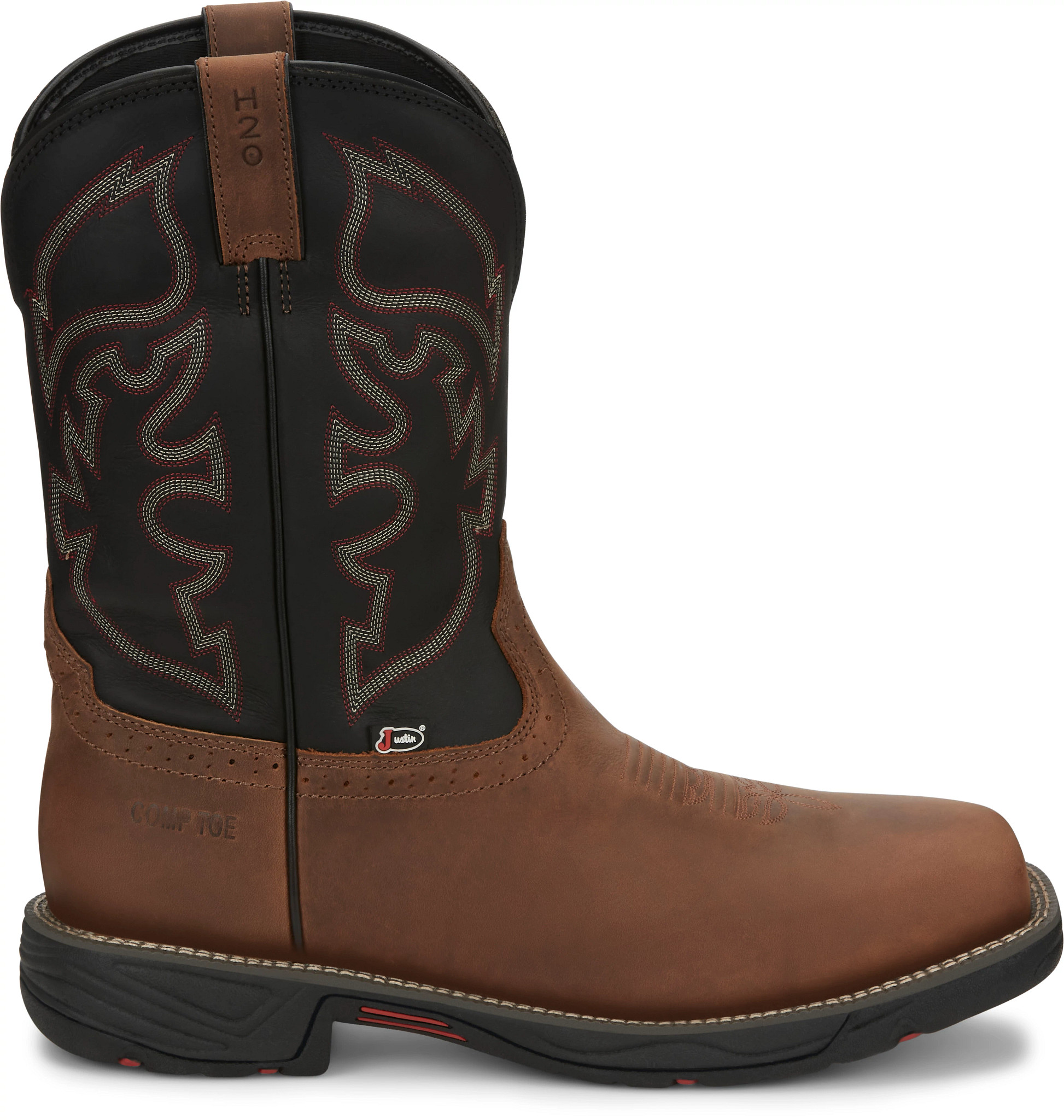 The 11” Stampede Rush Composite Toe boot in Tan is designed to give you rugged performance with a flexible fit and the comfort and protection you need, whether it’s work or play.