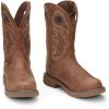 The 11” Stampede Rush Waterproof Round Nano Comp Toe boots feature an athletic construction that gives you flexibility in every step, with a waterproof design and Ortholite® insoles for comfort. The durable outsoles provide you with essential traction. This boot is Electrical Hazard Rated.