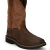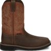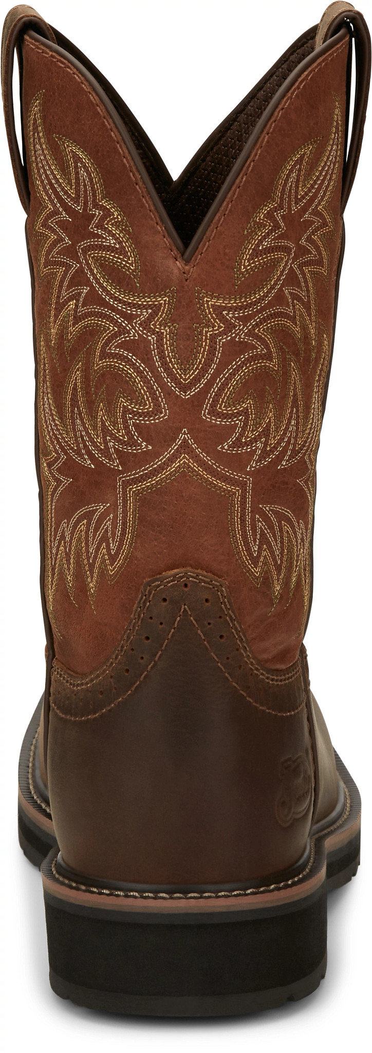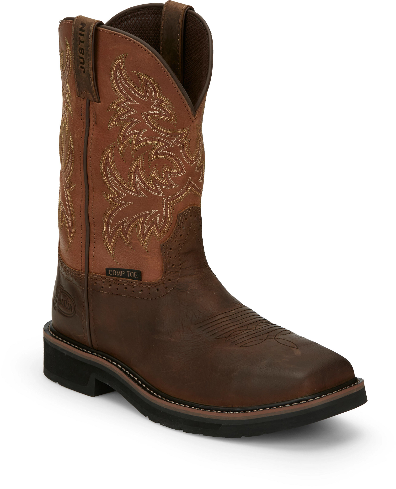 Its light reddish tan upper is embellished by a green, yellow, and cream stitch pattern and is paired with a stonewashed golden brown square toe vamp. The composition toe provides an armor-like shield and meets safety standards without weighing your foot down. This boot also features the J-Flex Flexible Comfort System® insole that adds cushion and support and the Stampede™ dual density rubber outsole with resistance to abrasion, chips, slipping, and marking which allows you to comfortably work on any surface and meets ASTM F2413-11, I75, C75 EH safety footwear standards.