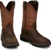 Its light reddish tan upper is embellished by a green, yellow, and cream stitch pattern and is paired with a stonewashed golden brown square toe vamp. The composition toe provides an armor-like shield and meets safety standards without weighing your foot down. This boot also features the J-Flex Flexible Comfort System® insole that adds cushion and support and the Stampede™ dual density rubber outsole with resistance to abrasion, chips, slipping, and marking which allows you to comfortably work on any surface and meets ASTM F2413-11, I75, C75 EH safety footwear standards.