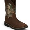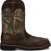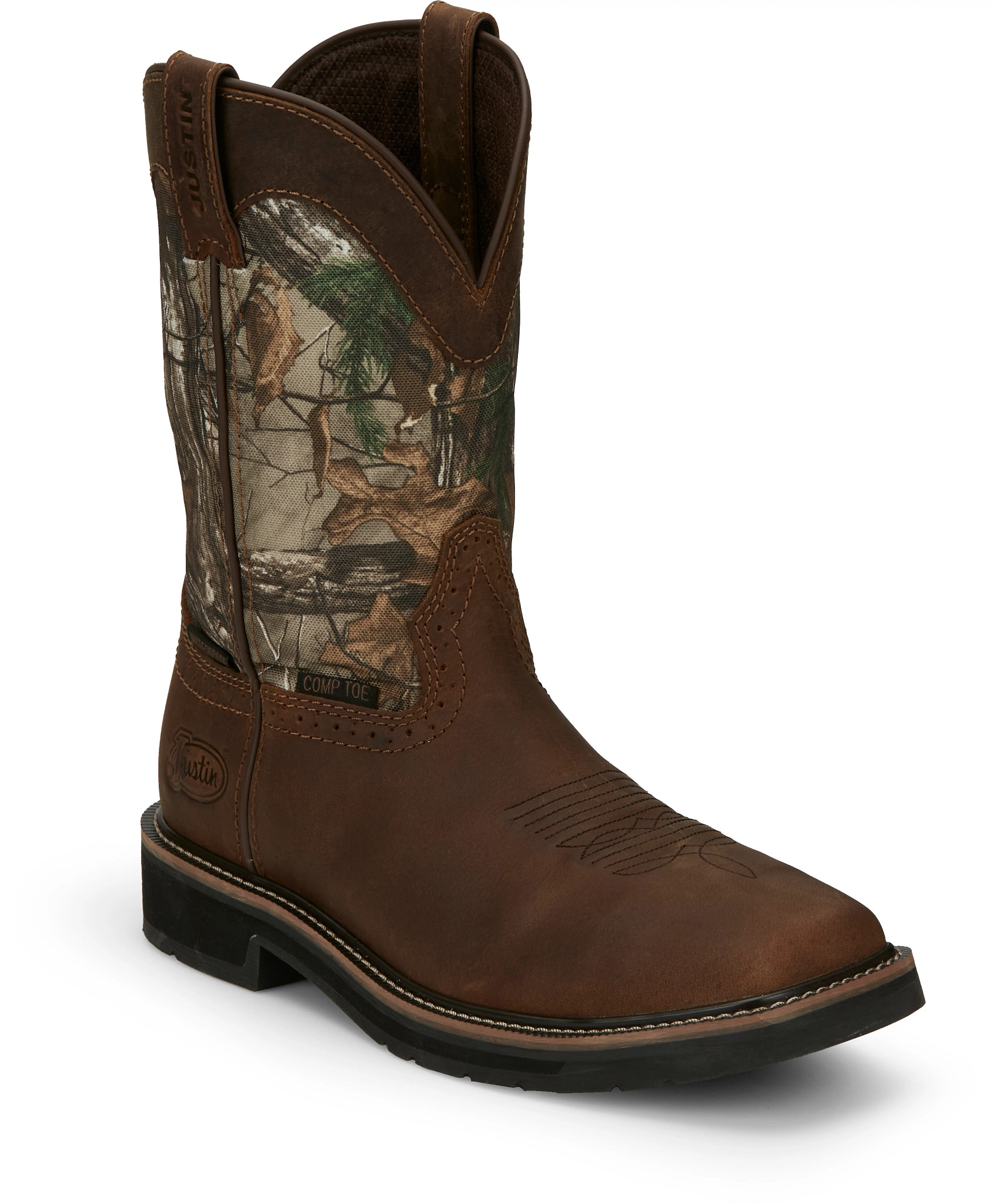 The RealTree® Mini X-Tra camo upper is paired with a polished brown leather vamp and collar. It features a waterproof exterior for added protection when up against the outdoor elements and a composition square toe for armor-like protection of your metatarsals that meets safety standards without weighing you down. The J-Flex Flexible Comfort System® insole cushions and supports your foot guaranteeing lasting comfort and meets ASTM F2413-11, I75, C75 EH safety footwear standards.