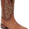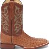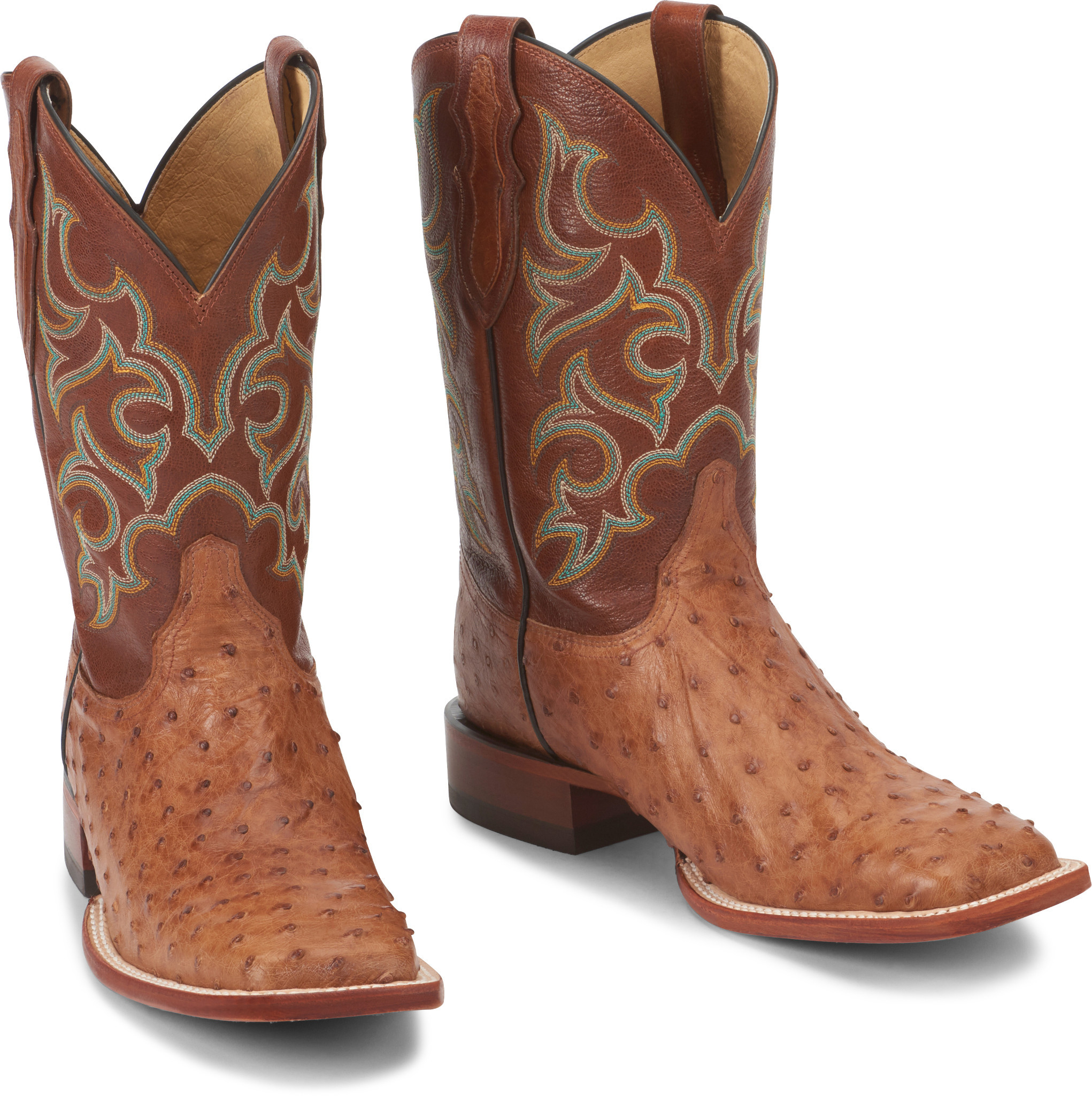 Featuring a rich leather upper with a golden tan stitch pattern and full quill ostrich foot, this boot is both lush and distinguished. Its made for comfort with a broad square toe and J-Flex Flexible Comfort System® insoles for added support.