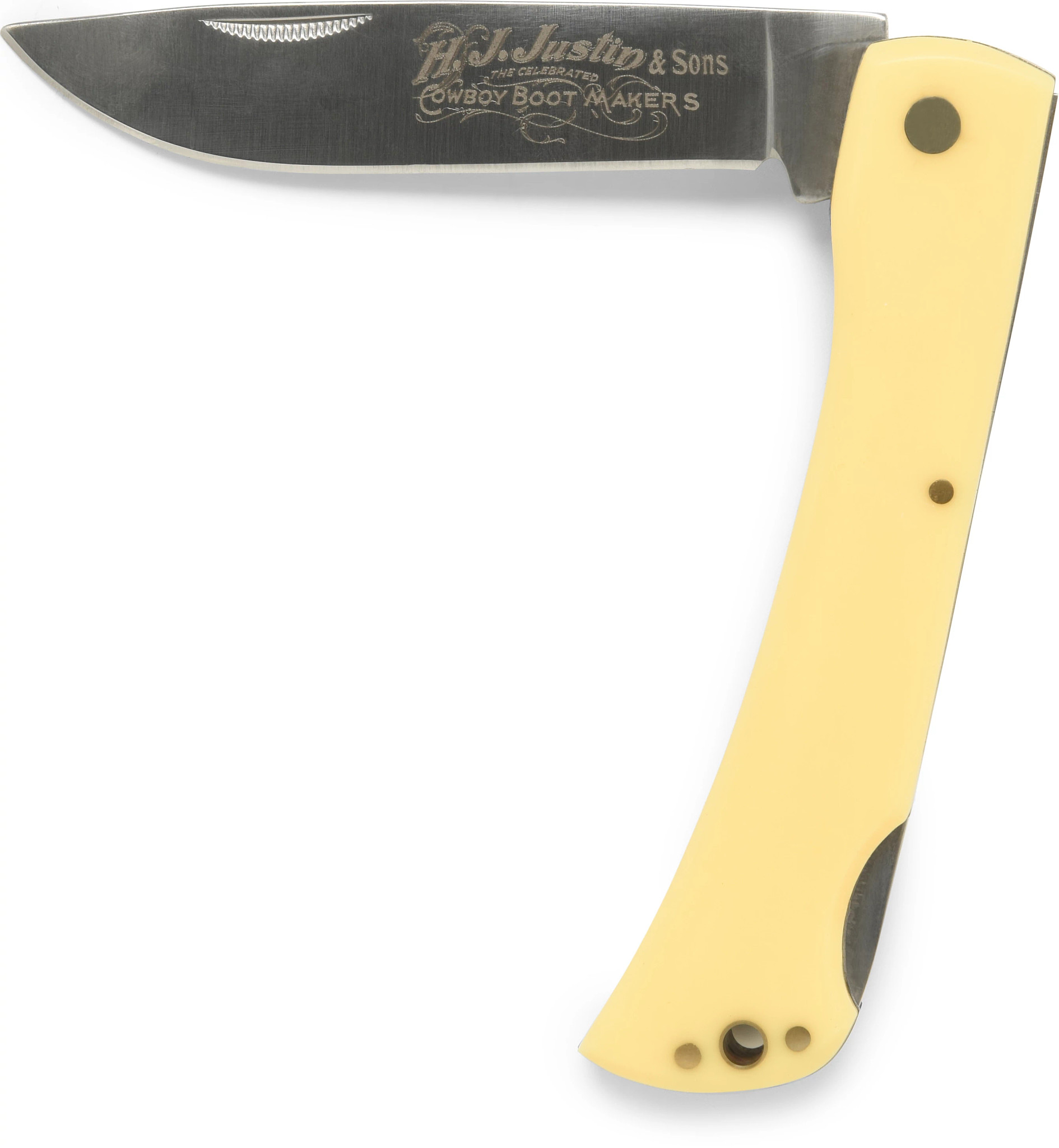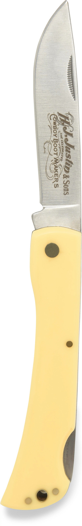 The Justin Rangebuster pocket knife is a testament to rugged simplicity and dependable craftsmanship. Featuring a robust stainless steel blade etched with the iconic Justin & Sons branding, this knife is built for precision and durability. The smooth yellow handle offers a classic look with a comfortable grip, while the back lock mechanism ensures secure handling during use. Lightweight and practical, it’s the ideal companion for everyday tasks or outdoor adventures, embodying the perfect blend of tradition and functionality.