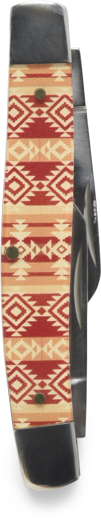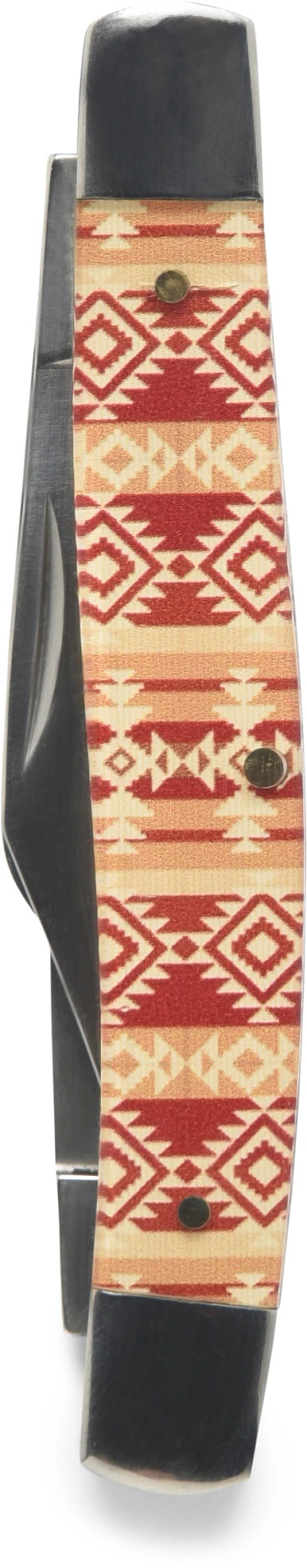 This eye-catching 3-blade Stockman knife is a perfect blend of rugged functionality and artistic design. Featuring Clip Point, Sheepsfoot, and Spey blades crafted from durable stainless steel, this knife is built to tackle a variety of tasks with precision. The vibrant acrylic handle showcases a bold Southwestern-inspired pattern, adding a unique flair that sets this knife apart. With stainless steel bolsters and liners for added strength, it ensures a reliable grip and lasting durability. Whether you’re a collector or an outdoor enthusiast, this Stockman knife combines practicality with a striking aesthetic, making it an essential addition to your gear.
