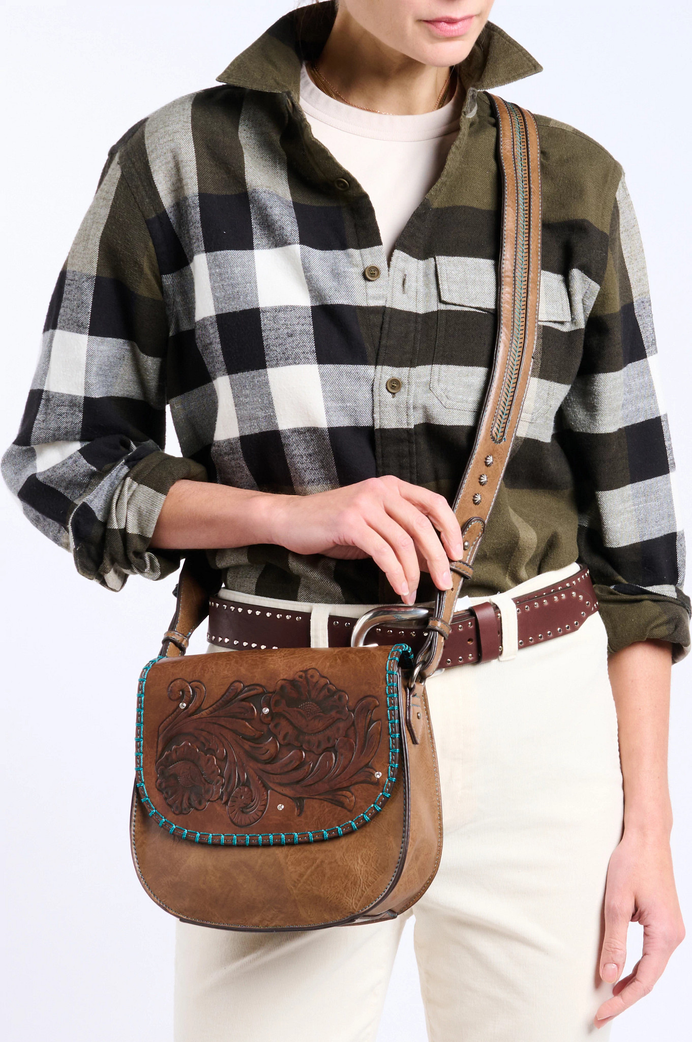 Enhance your style with the Justin Women’s Saddle Bag, featuring delicate lace accents and charming fringe tassels. This bag combines rustic charm with a touch of sophistication, making it a perfect accessory for any outfit.