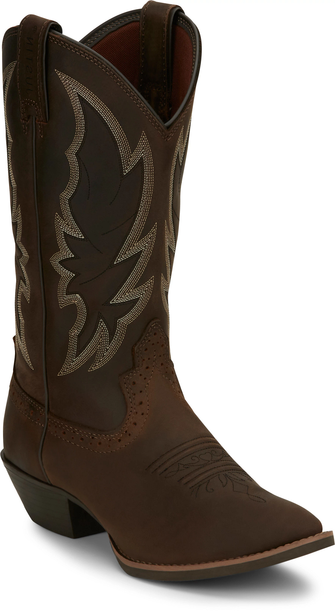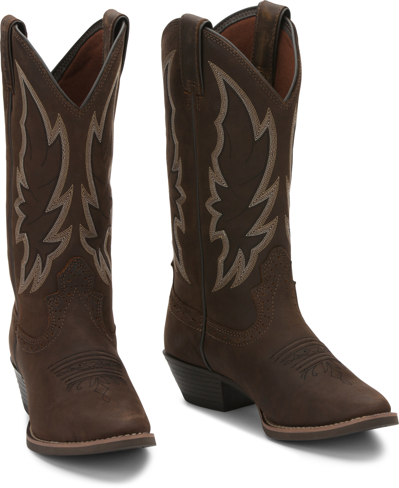 Gorgeous stitching creates a tonal effect, while delicate broguing details at the base of the shaft add timeless flair. Inside, the J-Flex Flexible Comfort System® with removable orthotic insert provides comfort. The medium round toe, rubber outsole, and long base riding heel make this an ideal choice for ranch life and nightlife.