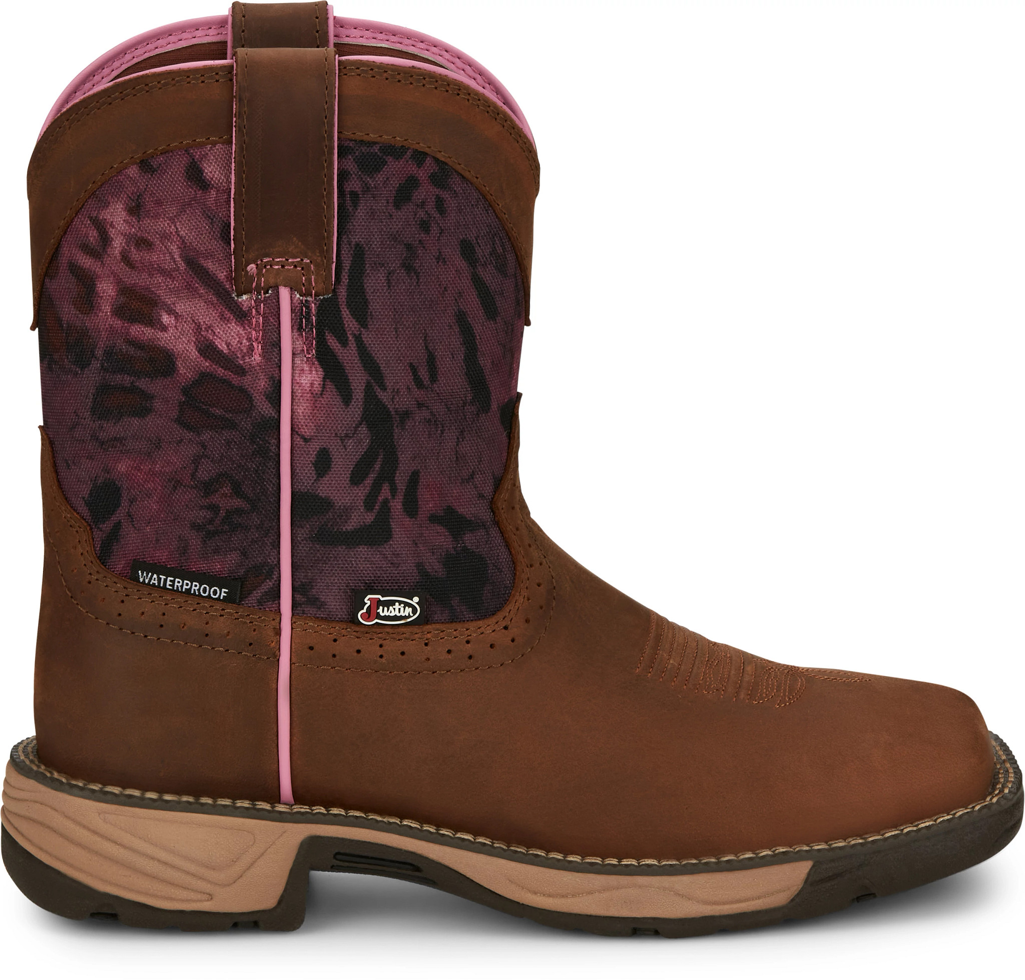 The 8” Harvest Brown Ladies’ Waterproof Stampede Rush boot is ready for whatever the world brings you every day. Featuring Prym1® Pink Out Camo Textile on the outside along with a removable Ortholite® insole on the inside, this boot combines strength to power your day with comfort as you stay on the move. The flexible and durable oil- and slip-resisting rubber outsoles give you all of the stability you need to stay on your feet no matter what the conditions are. This boot is Electrical Hazard rated.