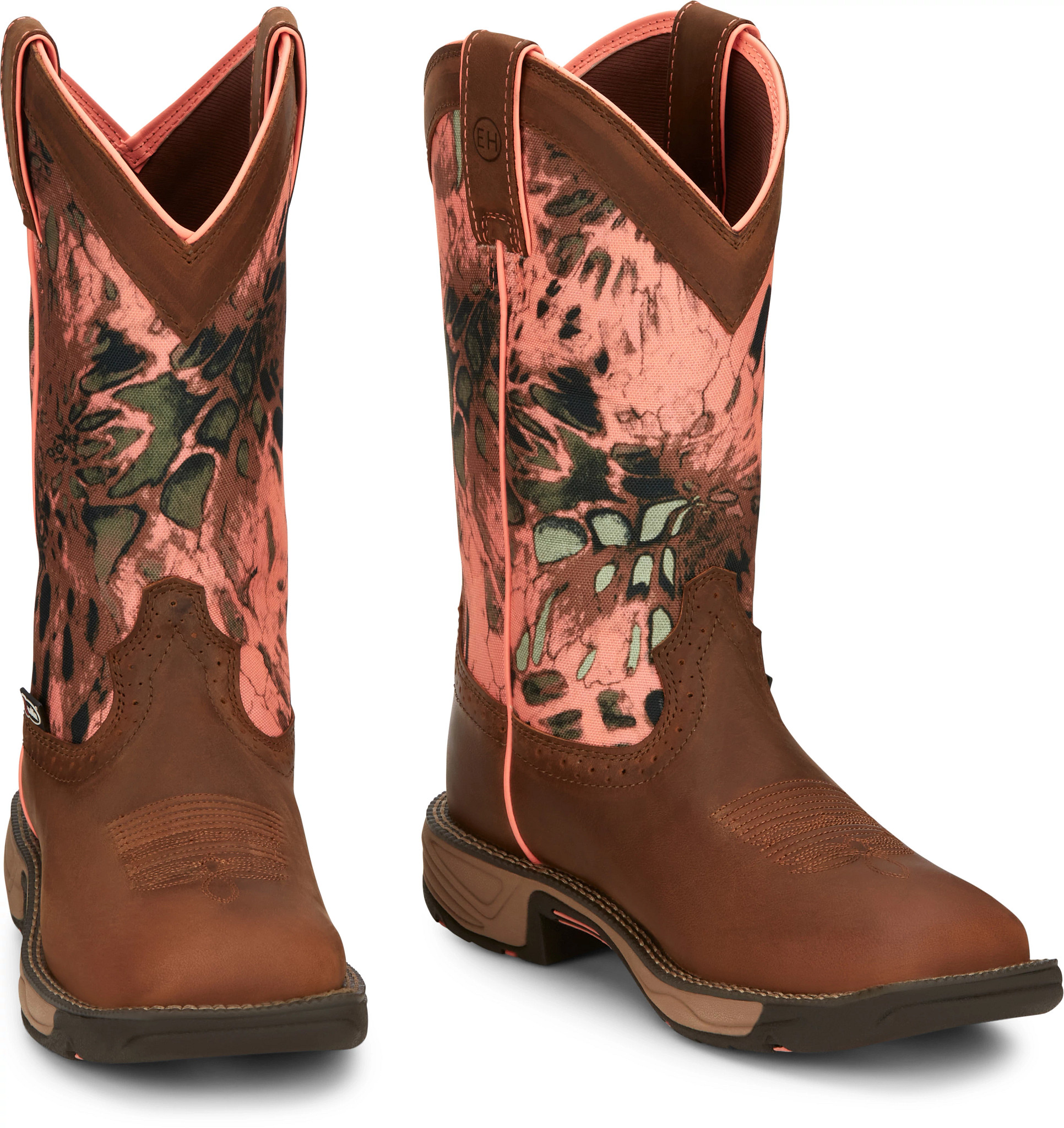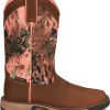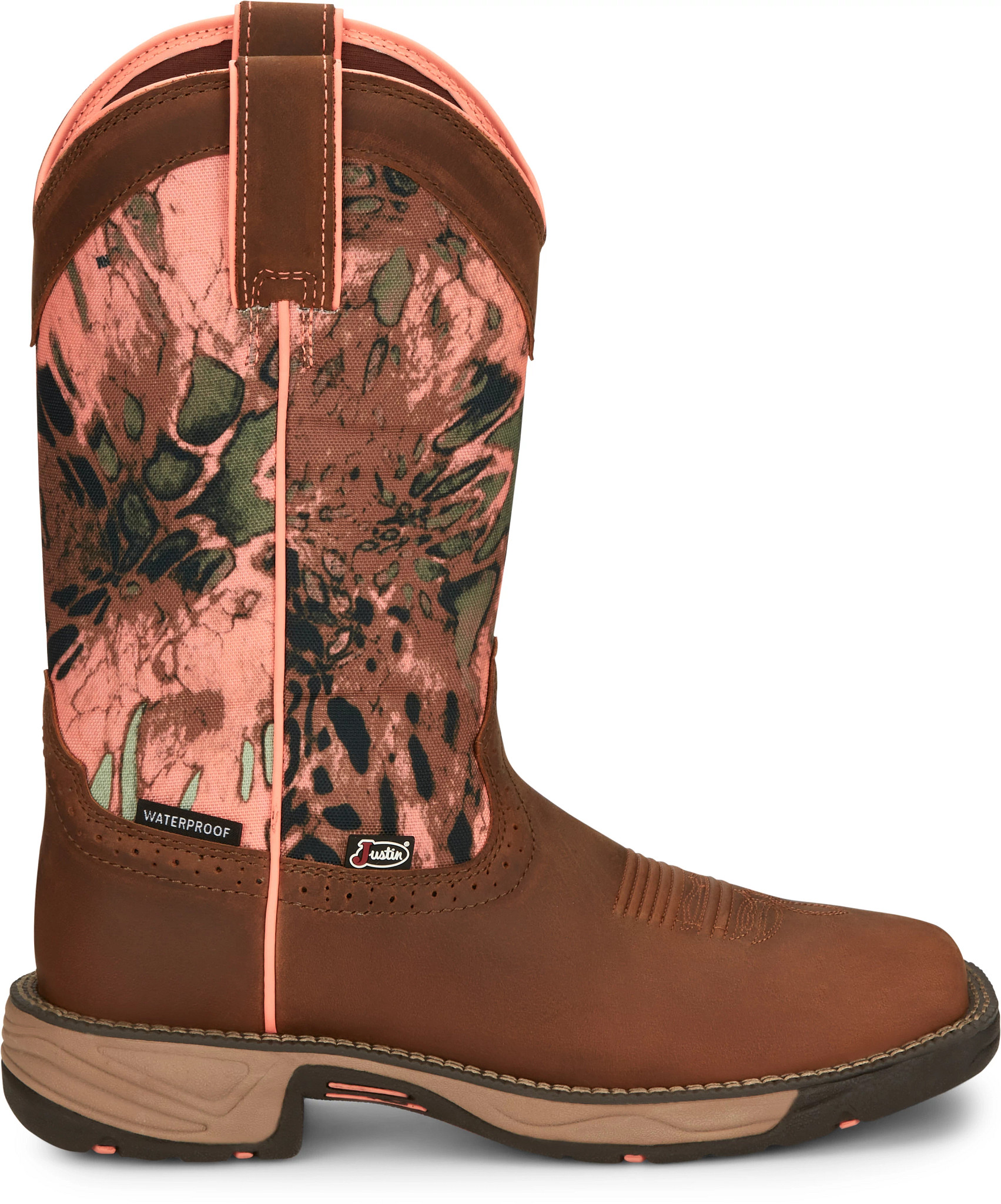 The RealTree®Mini X-tra camo upper is paired with a polished brown leather square toe foot and collar and features a waterproof exterior for added protection when up against the outdoor elements. The J-Flex Flexible Comfort System® insole cushions and supports your foot on or off the trail.