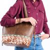 Rich brown with intricate tooling accents, turquoise suede lacing, and washed studs, it’s a statement piece. With one spacious compartment, zipper pocket, and organizer pockets, it keeps you organized. Zipper top closure, exterior slip pockets, and concealed carry pockets offer versatility.